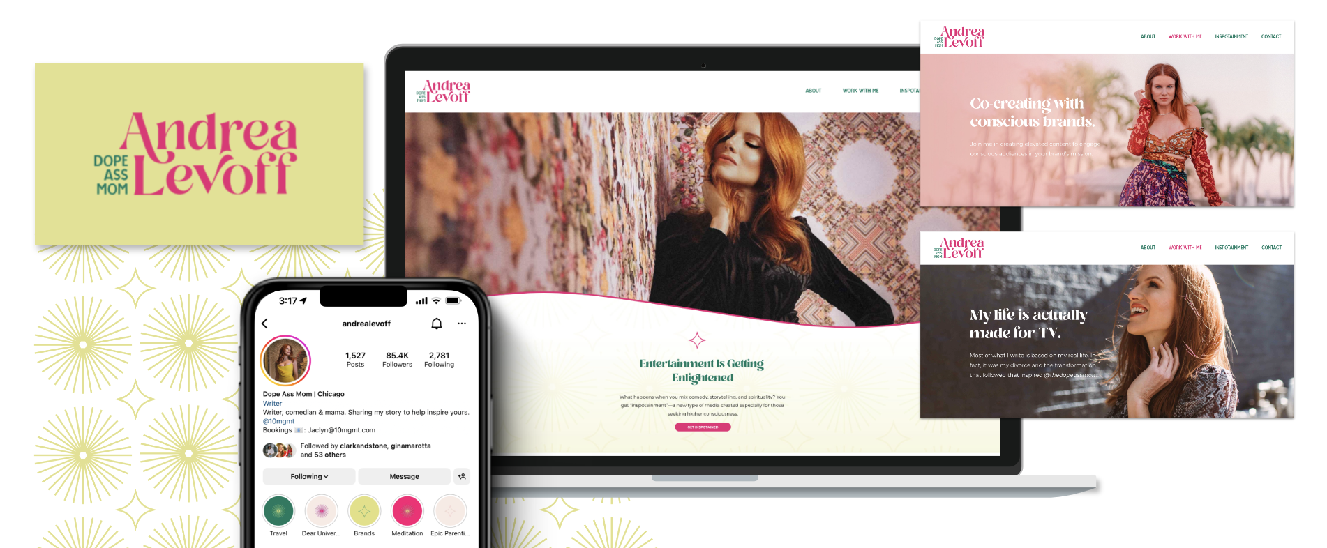 An established content creator with many brand partnerships under her belt, Andrea Levoff had amassed much success across social media. But as she prepared for her next endeavor, screenwriting, she needed a credible platform to back her up. She came to SimplyBe. to define her brand message, rebuild her website, and equip herself with the strategy needed to venture into the next iteration of her career.